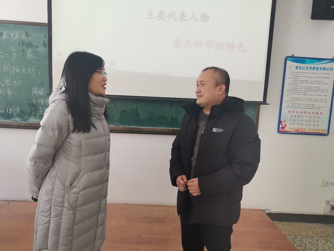 1125日,由孙美晖书记、周来顺副院长组成的教学秩序检查组深入学院青年教师张灵馨《马克思主义哲学史Ⅲ》的课堂,对课程教学内容、教学效果、教学方法、师生互动及学生出勤情况、学习状态、课堂氛围等多方面进行了检查,并提出了相应的指导意见。