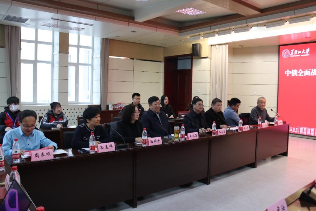 王永清指出,要深入学习领会中俄关于深化新时代全面战略协作伙伴关系的联合声明,贯彻落实习近平总书记考察我省时的重要讲话精神,我校要结合自身的历史沿革、办学特色和地缘优势,作为俄语教育的基地和摇篮切实肩负起“研究俄罗斯问题”和“对俄教育合作办学”两大任务,守好向北开放战略高地。他表示,希望各专家学者就本次座谈会的中心议题发表见解,为中俄全面战略协作框架下的哲学学科建设与发展、我校全面对俄合作战略的未来走向“带道指路”。