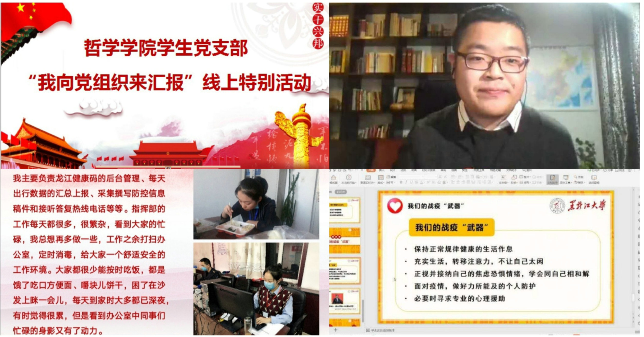进一步做好疫情防控期间的学生党员思想引导工作,按照进行时,组织生活不断线,学生党员教育管理不放松的要求,果冻传媒 结合学生党员实际和工作重点,2020年3月13日举办了学生党员“我向党组织来汇报”线上特别活动。活动紧紧围绕“引导学生党员充分发挥先锋模范作用,用实际行动为党旗增辉、为党徽添彩,让党旗在防控疫情斗争中高高飘扬”的主旨内容开展。学生党员代表分别从“投身疫情防控一线志愿服务、线上学习经验与方法分享、居家学习生活节奏及心理调试、融入学院线上文体活动心得分享”等方面,结合自身实际与经历感悟,与学院全体学生党员进行深入交流。大家相互学习,汲取经验,共同提高。学生党员真切表达出在特殊时期的庄重承诺,体现出严以律己的责任担当,彰显出“抗击疫情,义不容辞”的青年榜样力量!努力发挥自身作用,坚定战胜疫情信心,以实际行动传递正能量,为打赢“疫”阻击战贡献出应有之力