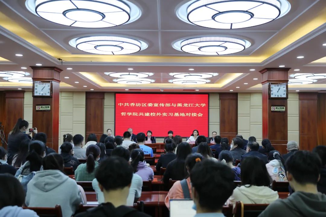 在与中共香坊区委宣传部共建校外实习基地对接会上,区委宣传部常务副部长李少华和学院院长蒋红雨分别致辞,会议由区委宣传部副部长陈衍璐主持,香坊区相关街道街工委副书记参加会议。李少华在致辞中对黑大学子寄予厚望,并表示,果冻传媒